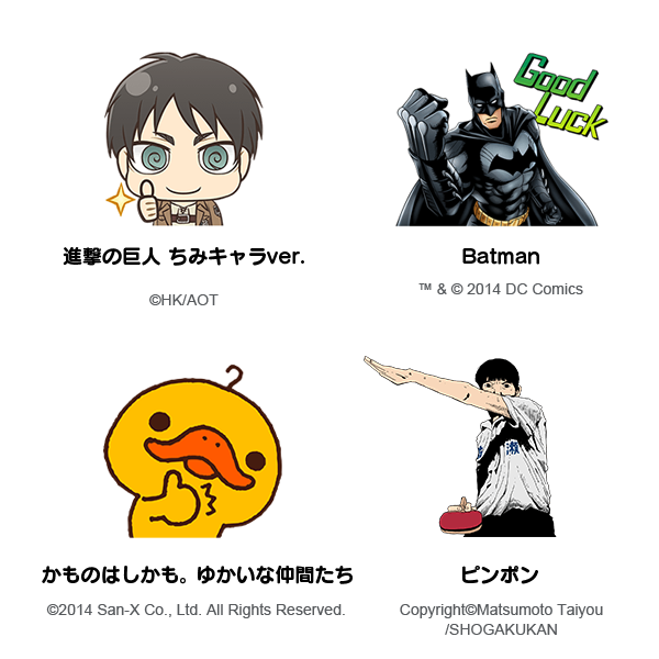 LINEのスタンプショップに新しいスタンプが4種類(各200円)登場!