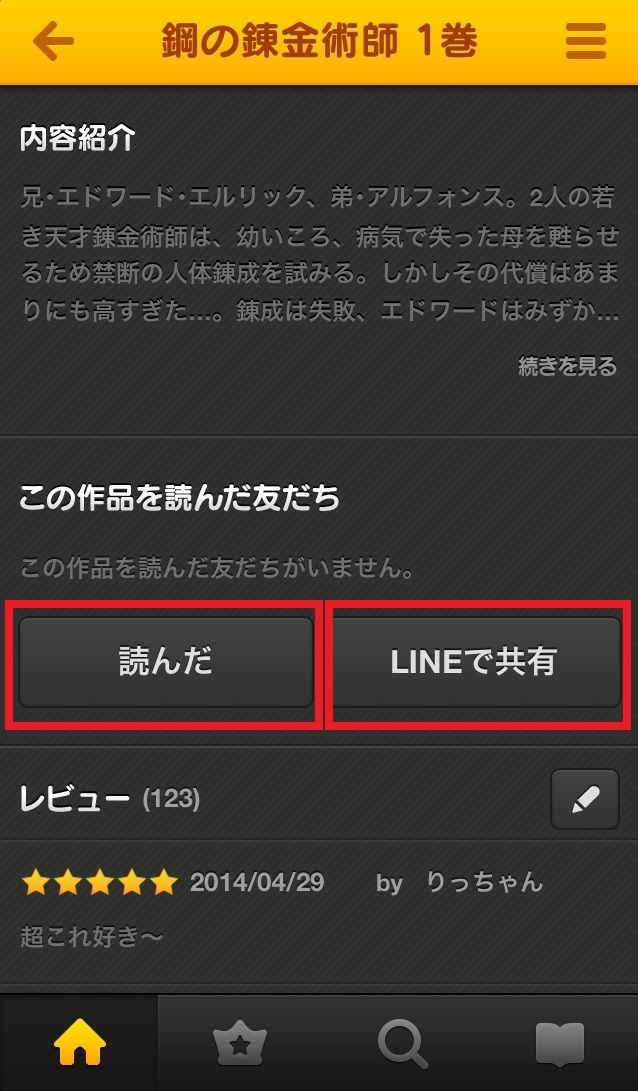 2)LINEマンガを読み終わったページからシェア!