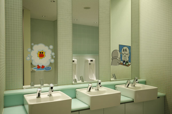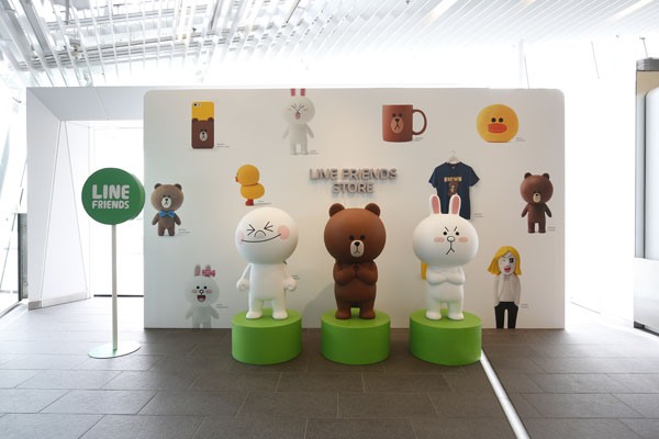 館内は、LINEの世界観を体感していただけるよう、イメージカラーの緑や、LINEキャラクターが至る所に登場。