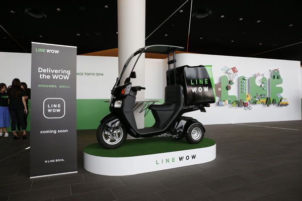 当日発表したフードデリバリーサービス「LINE WOW」で活躍予定の、LINE WOWオリジナルバイクもお目見えです。