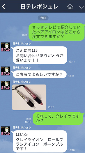 日本テレビ深夜の通販番組「ポシュレモダンモール」と連動した公式アカウント「日テレポシュレ」では、放送中に紹介されたアイテムについて、オペレーターが皆さんの質問に個別にお答えします。