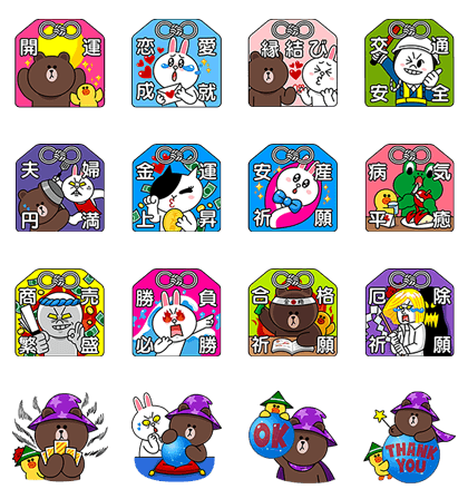 スタンプ 2014年06月11日 ブラウンやコニーがお守りに!?「LINE 占い」の限定スタンプ登場!さらに今だけ2倍のコインをもれなくプレゼント 先日リニューアルした「LINE 占い」では、LINE友だちとの相性占いやCHIEさん・ゲッターズ飯田さんらの無料鑑定などが大好評です。そしてこの度、「LINE占い」をインストールしてくれた皆様が利用できるLINEスタンプが登場!ポップなお守りになったLINEキャラクターたちと、ア