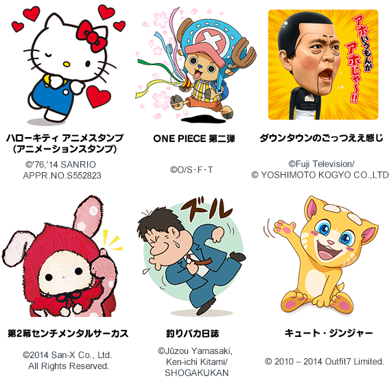 スタンプ 2014年09月11日 動きがキュート!ハローキティのアニメーションスタンプが登場!さらに、ONE PIECE第二弾や”ごっつええ感じ”など注目の新作も続々追加! LINEのスタンプショップに新しいスタンプが6種類(各200円)登場!*iOS4.6未満のLINEでは、一部スタンプが表示されません。最新版のLINEにアップデートしてお使いください。ハローキティのアニメーションスタンプがついに登場!キュートな動きに注目です。さらに、ONE PIECE