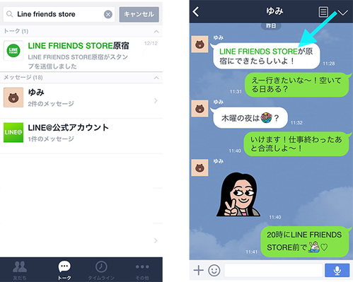 アップデート 2015年01月06日 【LINE 4.9.0】あの会話、どのグループでしてたっけ?メッセージ内容の検索機能搭載!iPhone6/6Plusにも対応しました。 LINEの最新版(バージョン4.9.0)を公開し、トークルームの検索対象に、“メッセージ内容”が加わりました。*トークルームの検索機能は、現在iPhone版を対象に先行公開しています。*トークルームの検索機能を、Android版でも提供開始しました。(追記:2015年1月6日) また
