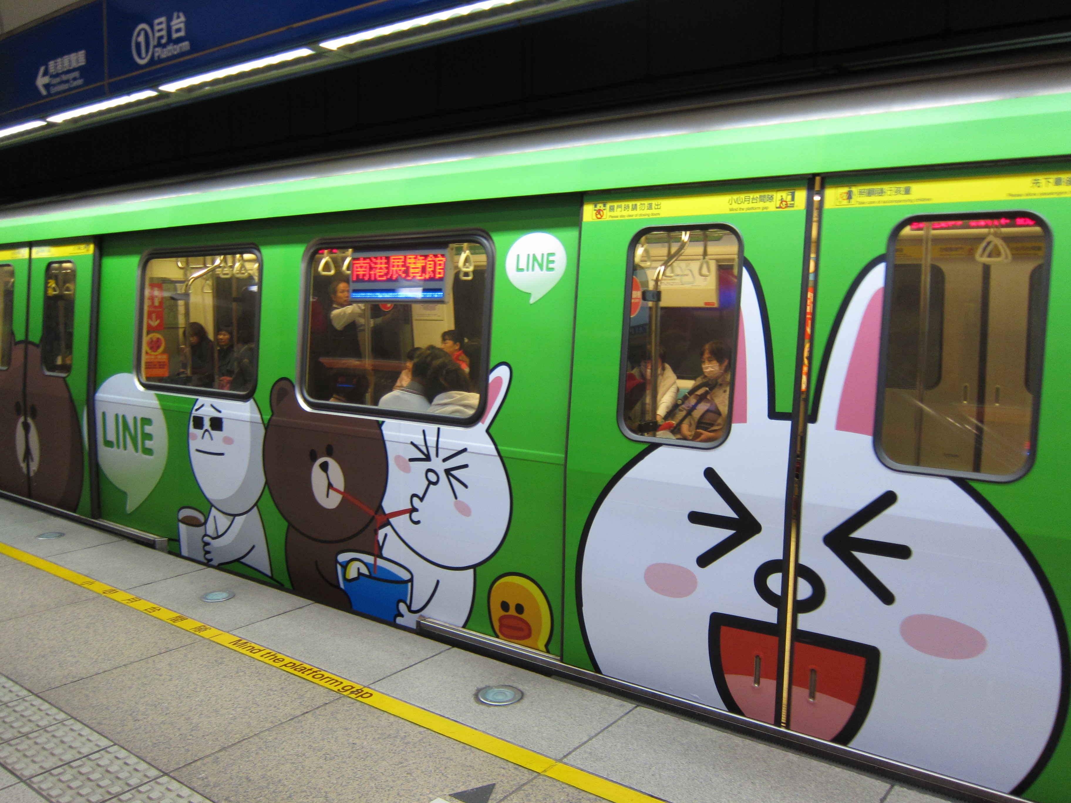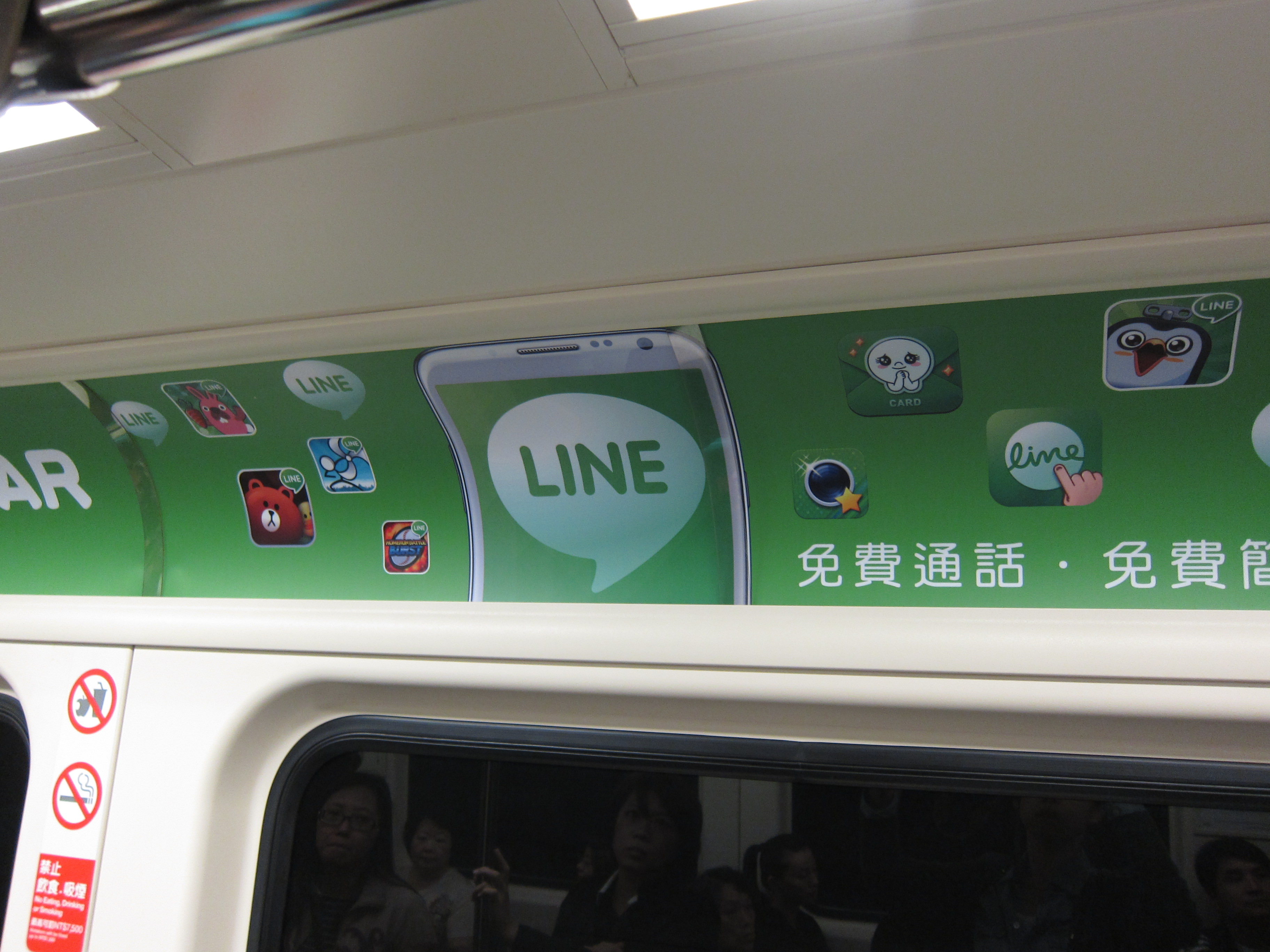 台湾では、電車を丸ごとLINEがジャック!LINEキャラクターが電車の外側はもちろん、電車内の広告にもたくさん登場しています。さらに、LINEキャラクターの人気投票イベントも開催し、電車内広告に載っているQRコードを読み取ってイベント用の公式アカウントを追加するなど、見るだけでなく参加して楽しむことができる電車×LINEのコラボを開催中です。