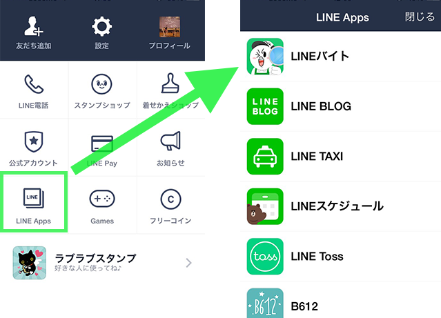 LINEアプリ内の、LINE Apps>LINEバイトから簡単起動。