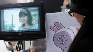 石原さとみさんは、LINEキャラクターの中でも、表情が激しいムーンの顔マネをしていますが、監督も大笑いするほどの演技に、監督をはじめ、スタジオ中が驚きました。さすが、女優さん!