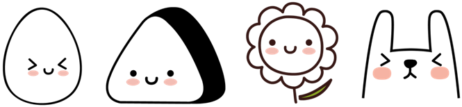 タマゴやおにぎり、ひまわりやチューリップなどが可愛い表情をしたスタンプです