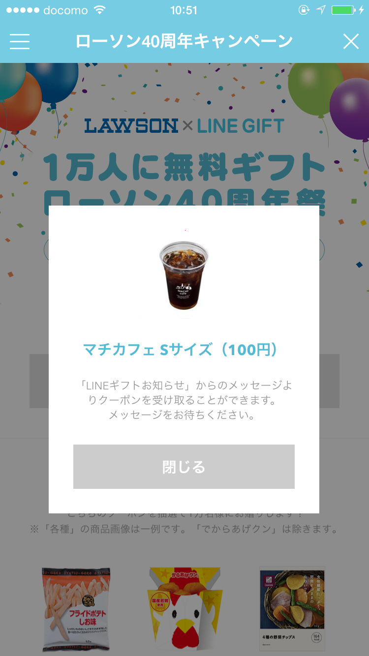 本日より、LINEギフトでローソン創立40周年祭がスタート♪