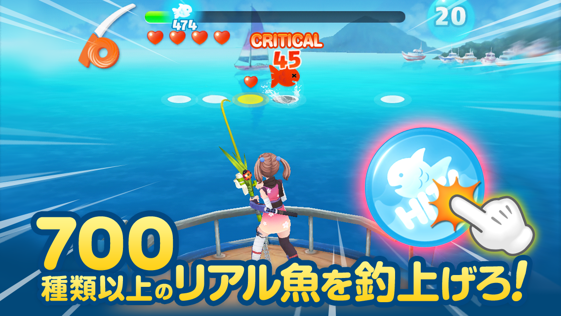 魚の数はなんと700種類以上!餌や釣り糸、補助剤を効率的に使い分けて美しい魚をたくさん捕りましょう。他にも着せ替えアイテムのコーデや、釣り道具の合成・進化、3D映像での水槽鑑賞など、釣りにまつわる様々なコンテンツが揃っています。
