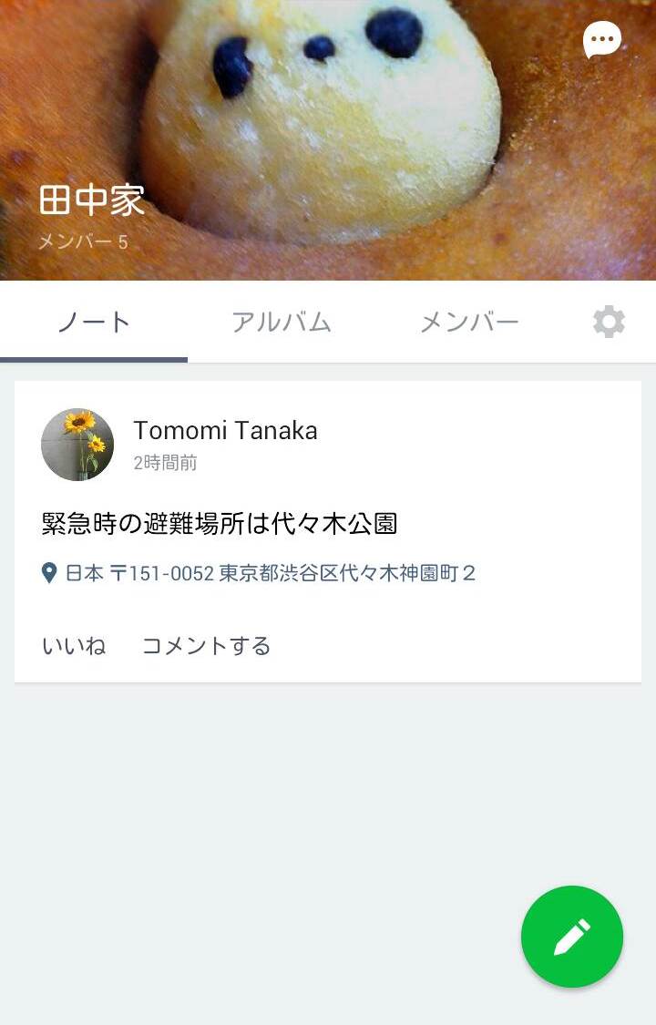 避難場所や緊急時の対応など、忘れてはいけない大切な情報は「ノート」機能に保管すると、いつでも見返すことができます。