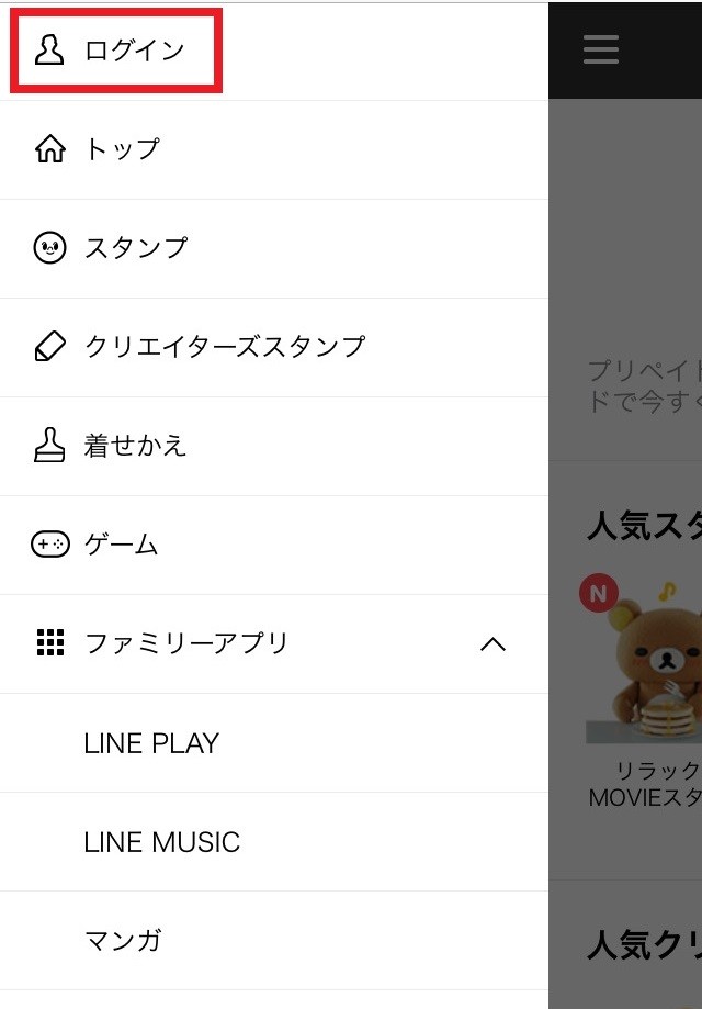 TOPページ左上にある[三]のメニューボタンをタップしてログインすると、LINEアプリ内と同様に「あなたへのおすすめスタンプ」が表示されます。あなた好みのスタンプ探しをお手伝いします。