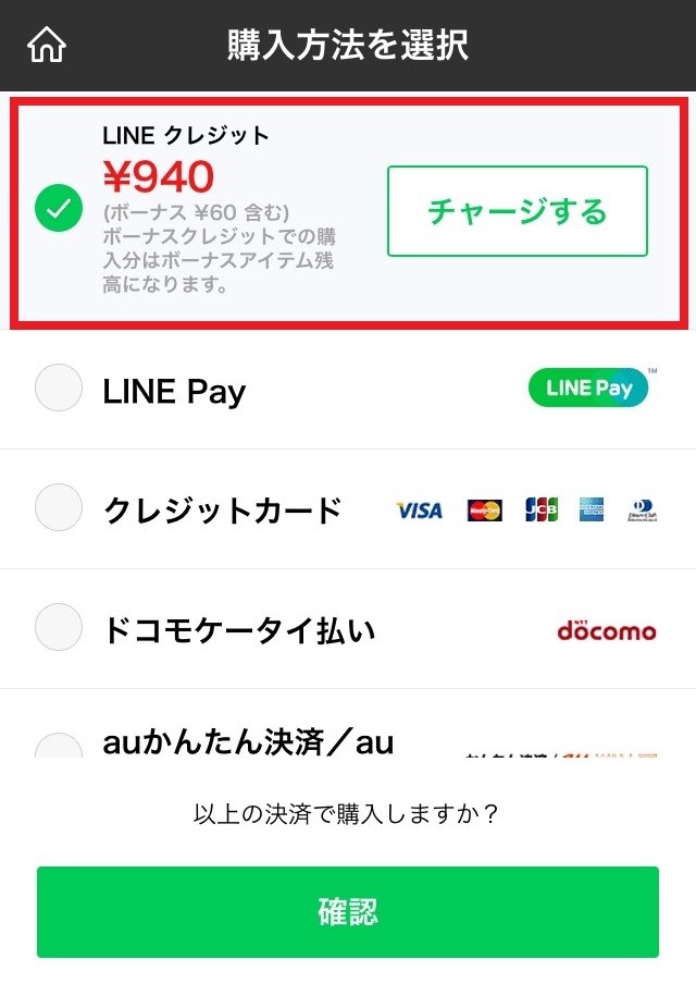 5.スタンプの[購入方法を選択]のページで[LINE クレジット]を選択して購入する。