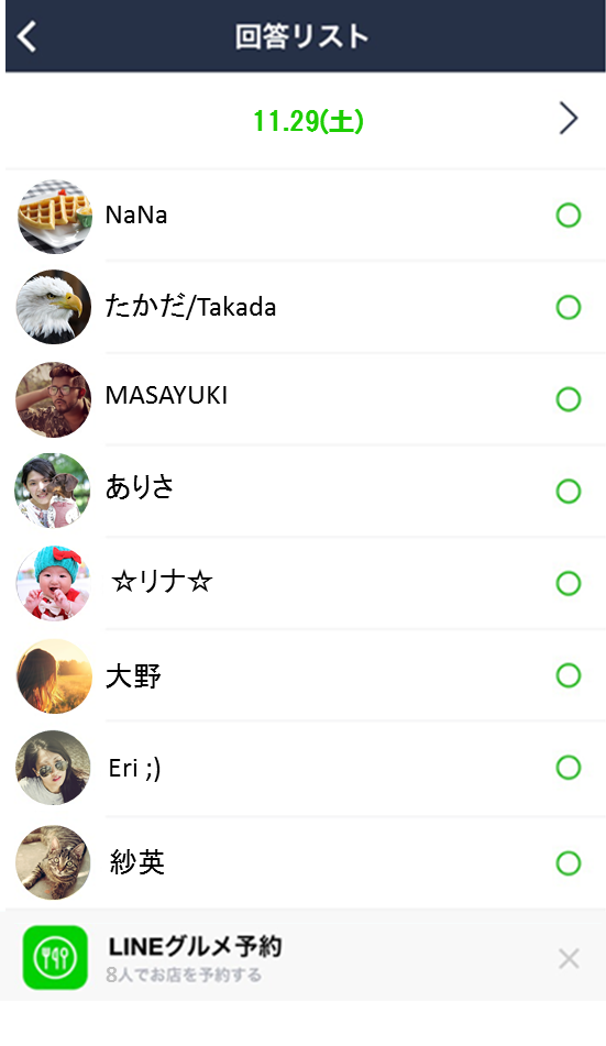 6) 全員の回答が集まったら、「◯」が一番多い日をタップしてみます。