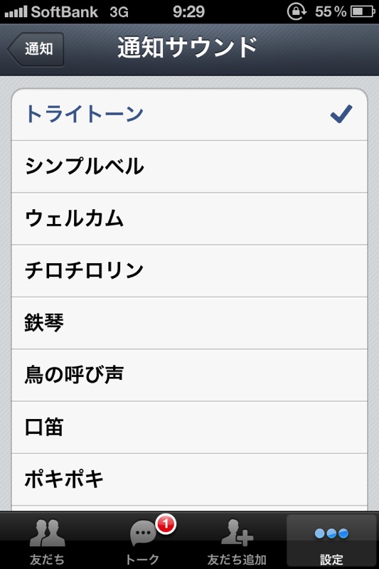 設定方法:「設定」>「通知」>「通知サウンド」>好きなサウンドを選択
