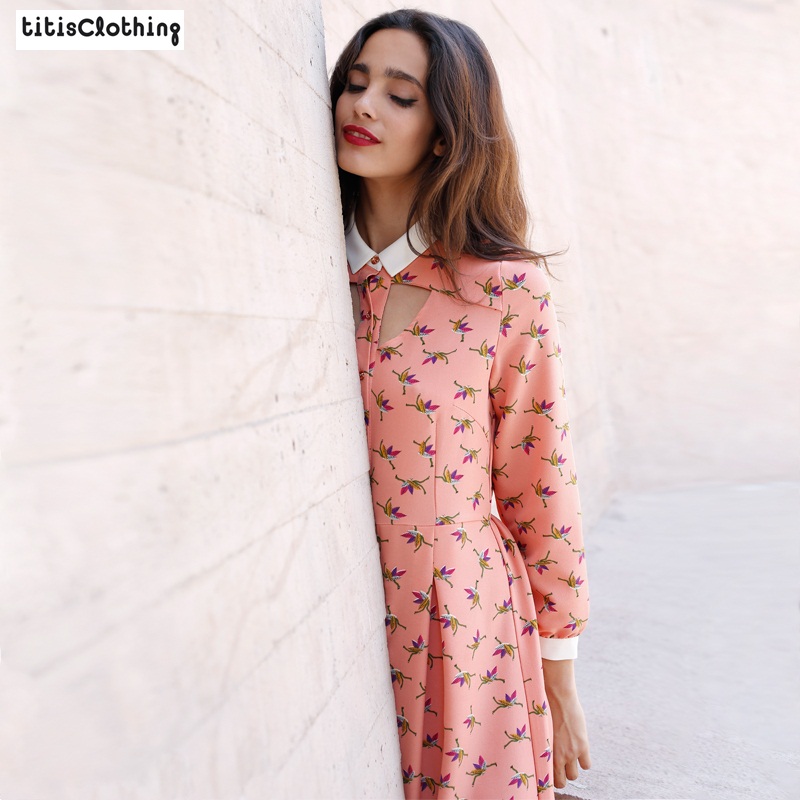 胸元のスリットがポイントの花柄ワンピースフランス