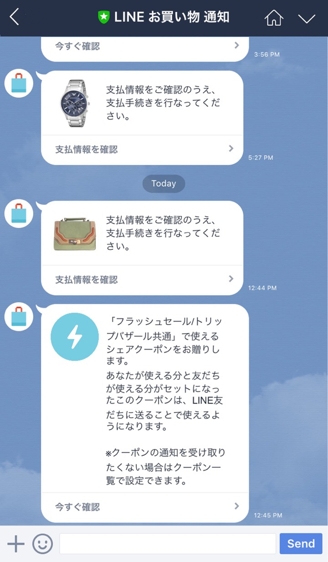 2)クーポンが発行されると「LINEお買い物通知」からメッセージが届きます。