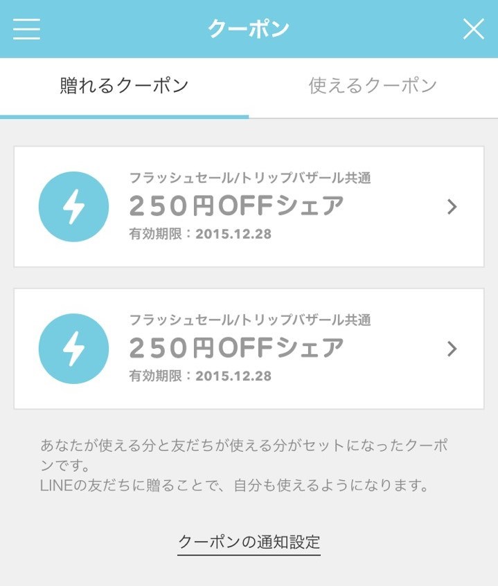 LINEフラッシュセール・トリップバザールでお買い物をした方全員に、友だちと使える「シェアクーポン」をプレゼントします。