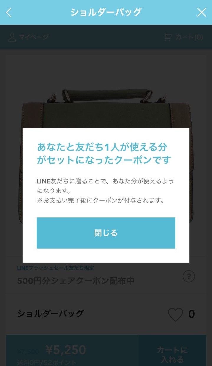 商品を購入した方と友だちが使える分がセットになったクーポン。