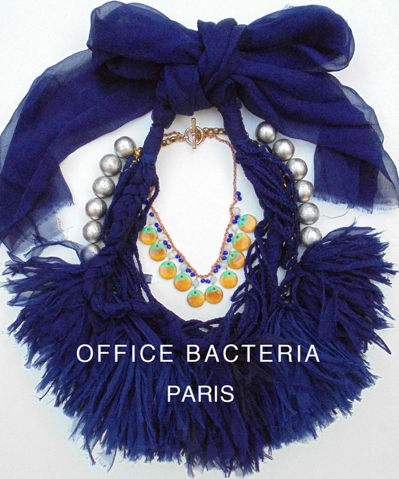 アクセサリーデザイナーのブリアンデ・カナエと、画家の池平徹兵によるコラボレーションブランド「オフィスバクテリア」パリと東京に離れて作られるアクセサリーは1点物の手作り品です。