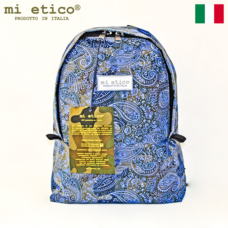 1941年の創業以来イタリアの軍用生地会社として知られるマヨッキ社。そのマヨッキ社のファッション部門が繰り出してきたブランドが「ミ・エティコ」です。自社のミリタリー部門が作る高機能軍用生地に、独自の加工技術によって鮮やかなプリントを施したバックパックは、その機能性とデザイン性で話題をさらっています。