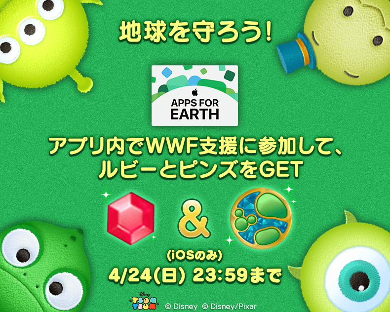 LINE:ディズニーツムツムからは、限定のピンズがもれなくもらえるルビーが登場。