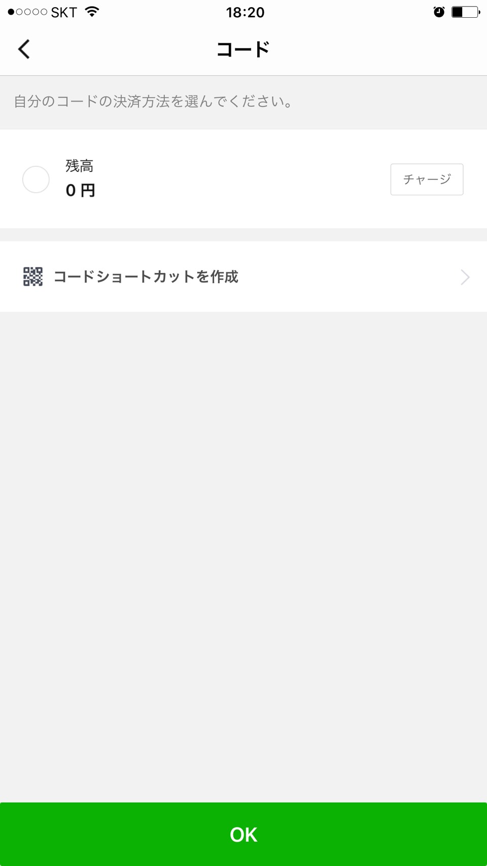 【2】コードの決済方法で「残高」を選択してください。(ご登録のクレジットカードはご利用いただけません。)