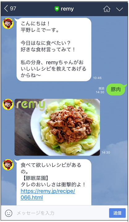 使いたい食材を送ると、Mrs.remyとおしゃべりするような感覚でレシピを教えてくれます!