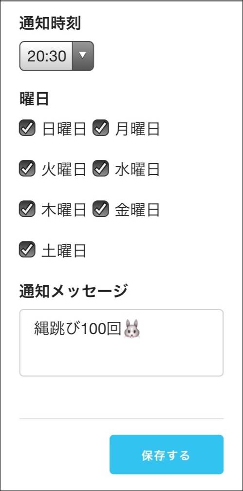 2)通知時刻と曜日、通知メッセージを設定して保存!