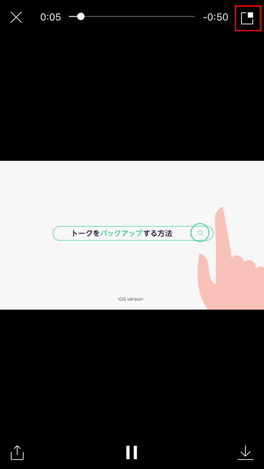 友だちから届いた動画をみながら、LINEのトークを楽しみましょう。まずLINEのトークルームで動画を開いたら、右上のアイコンをタップ!