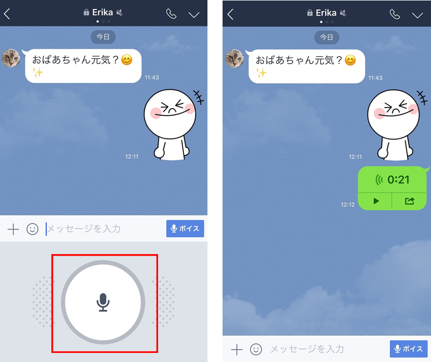 ボタンを離すとボイスメッセージが送信されます♪