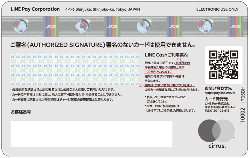 (1):LINE Cashの場合、残高上限は10万円です。
