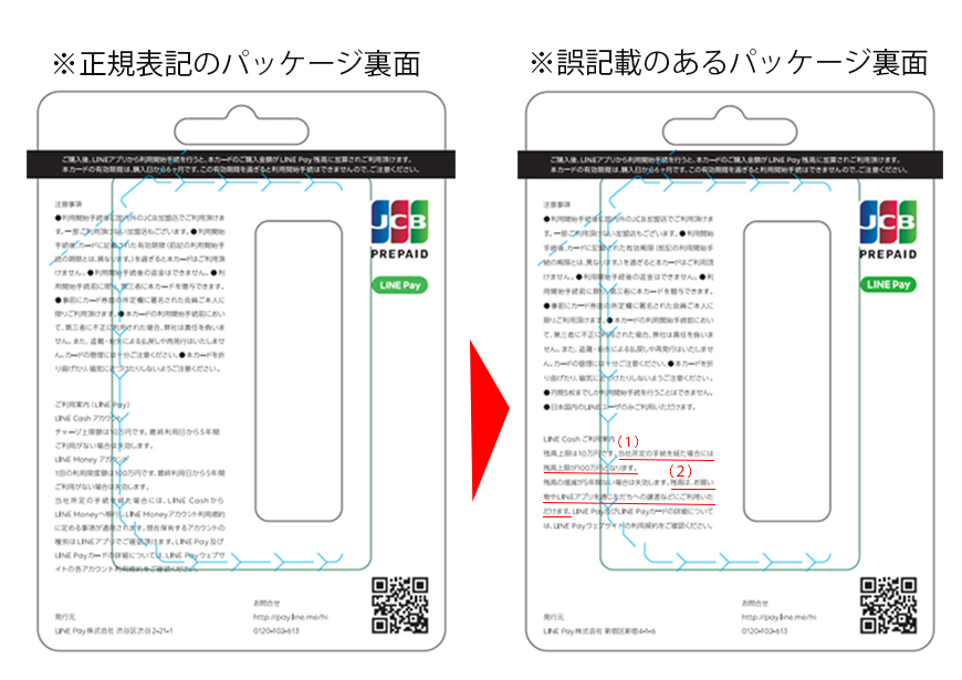 ■現在販売中のLINE Pay カード記載「ご利用案内」の誤りについて