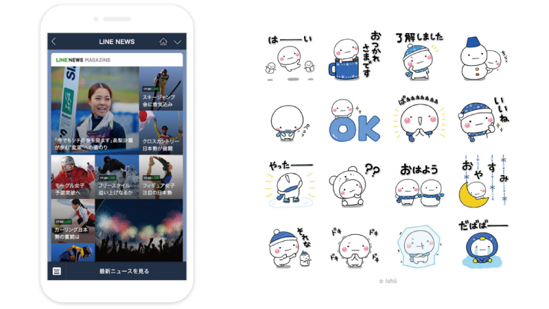 「平昌五輪☆トゥデイ」のマガジンを追加(購読)すると、LINE スタンプの⼈気キャラクター「しろまる」のかわいいスタンプがもれなくもらえるキャンペーンを開催。