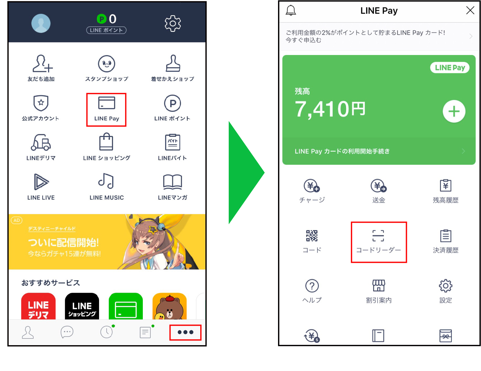 1.LINE Payのコード画面を提示してレジで読み取ってもらう