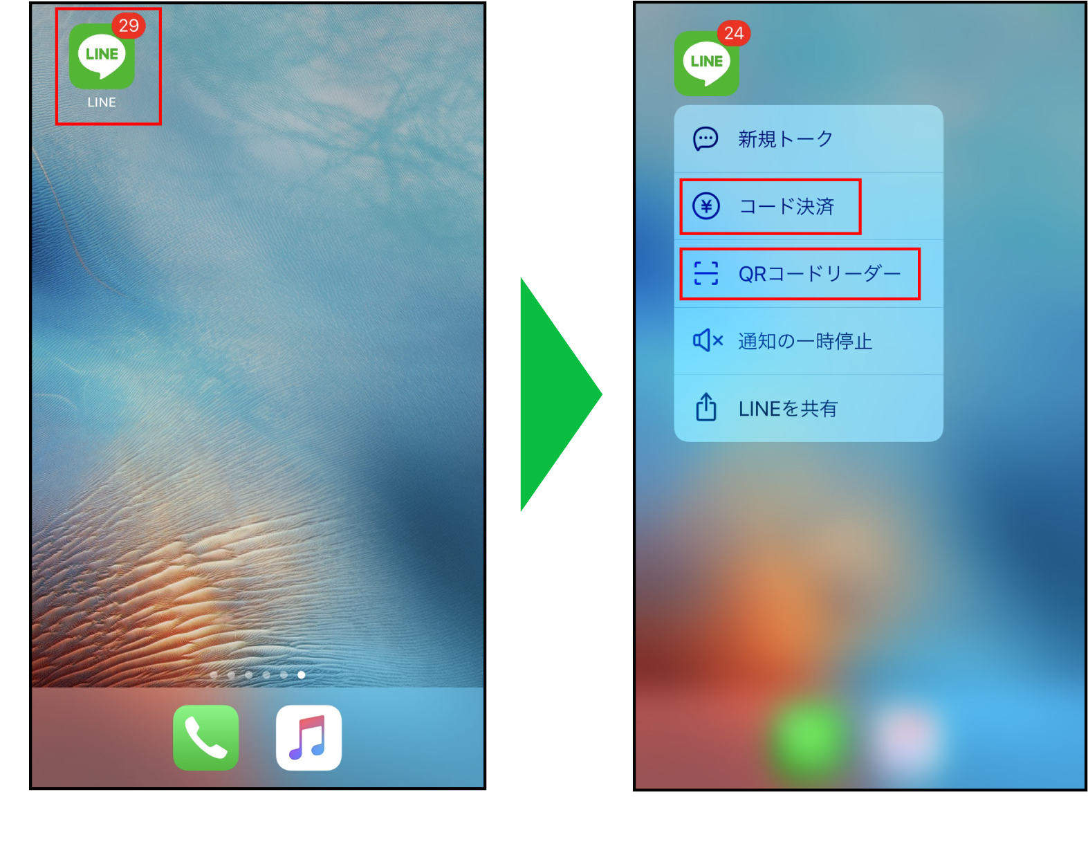 ショートカットアイコンの作成や、3D Touch機能を知っておくと、LINEを立ち上げなくても、パスワードを入力するだけでコード画面を表示できるので、カードや現金を出すよりもさらに早くお会計が完了しますよ!