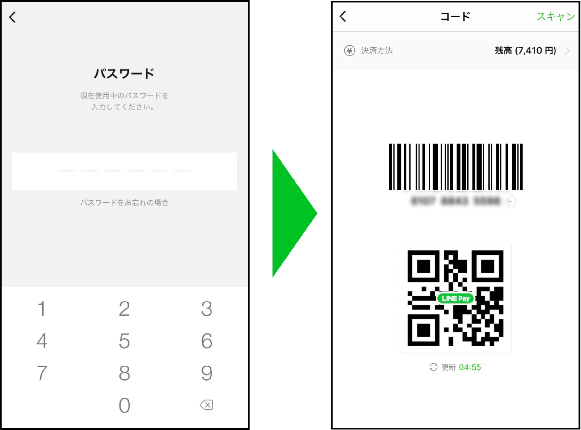 -1.LINE Payのコード画面を提示して、レジで読み取ってもらう時