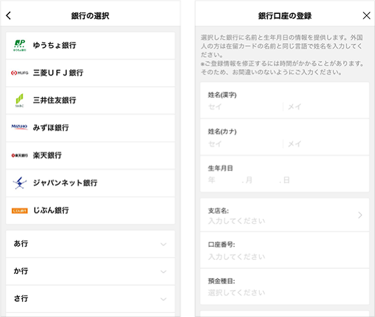登録した銀行口座を選択して金額を入力します。