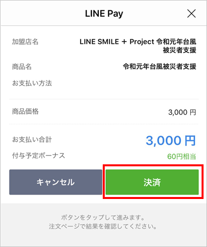 ⇒LINE Payで寄付をする (スマートフォンのみ)