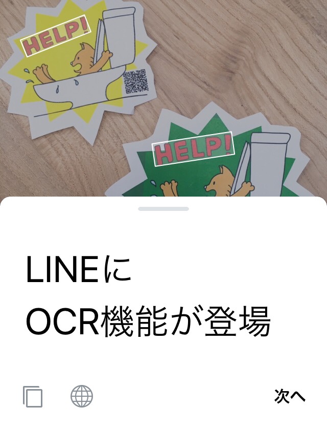 画像の中にあるテキストを読み取り、そのまま文字に起こしたり、翻訳したりできる「OCR機能」も、同じく5月に登場しました。この機能を使えば、旅行先の海外で出会った読めない文章など、LINEを開いてサッと写真を撮るだけで翻訳をかけることができます。