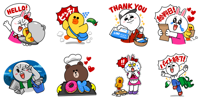 キャンペーン スタンプ 2015年04月15日 「バイト終了!」「給料日!」LINEキャラがバイトを頑張る無料スタンプ登場 LINEでバイト探しができる「LINEバイト」から、希望のバイト条件を無料登録するだけLINEキャラクターのスタンプがもらえるキャンペーンが始まりました!LINEバイトとは? http://baito.line.me/LINEバイトオリジナルスタンプ【LINEだ!バイトだ♪】(全8種)(C) LINE Corpora